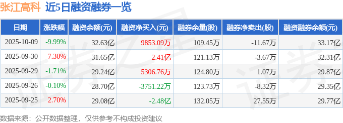 张江高科融资融券信息显示,融资方面,当日融资买入10.22亿元,融资偿还9.23亿元,融资净买入9853.09万元,连续3日净买入累计3.93亿元。融券方面,融券卖出18.64万股,融券偿还30.31万股,融券余量109.45万股,融券余额5413.57万元。融资融券余额33.17亿元。