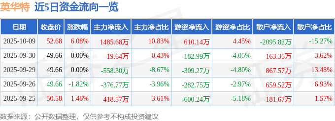 证券之星消息,截至2025年10月9日收盘,英华特(301272)报收于52.68元,上涨6.08%,换手率8.42%,成交量2.64万手,成交额1.37亿元。