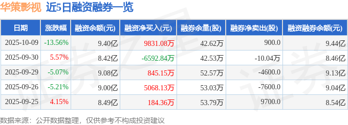 证券之星消息,截至2025年10月9日收盘,华策影视(300133)报收于8.03元,下跌13.56%,换手率12.43%,成交量201.73万手,成交额16.36亿元。
