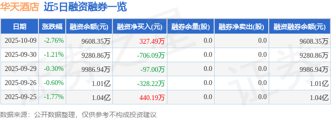 证券之星消息,截至2025年10月9日收盘,华天酒店(000428)报收于3.17元,下跌2.76%,换手率3.13%,成交量31.89万手,成交额1.01亿元。