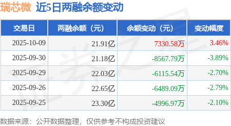 证券之星消息,10月9日,瑞芯微(603893)融资买入4.13亿元,融资偿还3.4亿元,融资净买入7355.57万元,融资余额21.79亿元。