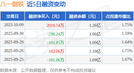证券之星消息,10月9日,八一钢铁(600581)融资买入3127.07万元,融资偿还1110.93万元,融资净买入2016.14万元,融资余额1.26亿元,近20个交易日中有11个交易日出现融资净买入。