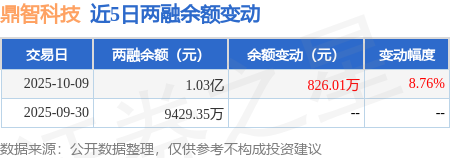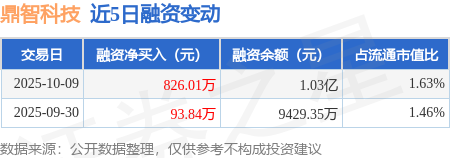 证券之星消息,10月9日,鼎智科技(920593)融资买入1588.13万元,融资偿还762.12万元,融资净买入826.01万元,融资余额1.03亿元。