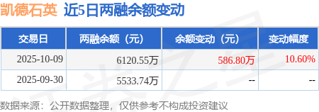 证券之星消息,10月9日,凯德石英(920179)融资买入1147.21万元,融资偿还560.41万元,融资净买入586.8万元,融资余额6120.55万元。