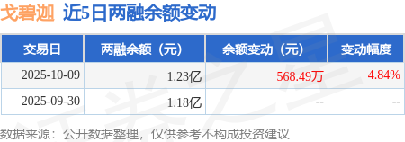 证券之星消息,10月9日,戈碧迦(920438)融资买入1333.84万元,融资偿还765.35万元,融资净买入568.49万元,融资余额1.23亿元。