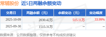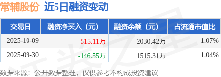 证券之星消息,10月9日,常辅股份(920396)融资买入1921.04万元,融资偿还1405.93万元,融资净买入515.11万元,融资余额2030.42万元。