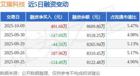 证券之星消息,10月9日,艾隆科技(688329)融资买入851.99万元,融资偿还360.39万元,融资净买入491.6万元,融资余额8609.86万元。