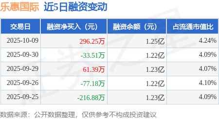 证券之星消息,10月9日,乐惠国际(603076)融资买入710.58万元,融资偿还414.33万元,融资净买入296.25万元,融资余额1.25亿元。