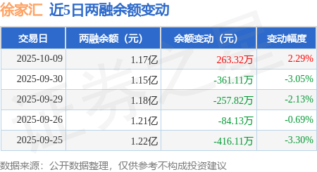 证券之星消息,10月9日,徐家汇(002561)融资买入1097.24万元,融资偿还833.93万元,融资净买入263.32万元,融资余额1.17亿元。
