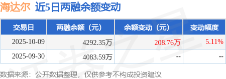 证券之星消息,10月9日,海达尔(920699)融资买入251.11万元,融资偿还42.35万元,融资净买入208.76万元,融资余额4292.35万元。