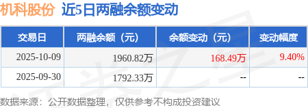 证券之星消息,10月9日,机科股份(920579)融资买入358.1万元,融资偿还189.61万元,融资净买入168.49万元,融资余额1960.82万元。
