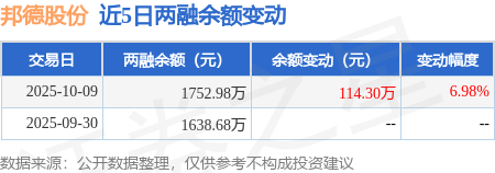 证券之星消息,10月9日,邦德股份(920271)融资买入230.17万元,融资偿还115.86万元,融资净买入114.3万元,融资余额1752.98万元。