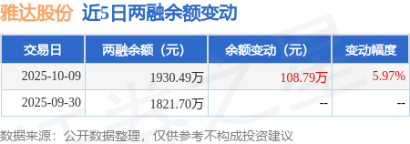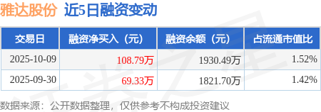 证券之星消息,10月9日,雅达股份(920556)融资买入180.43万元,融资偿还71.65万元,融资净买入108.79万元,融资余额1930.49万元。