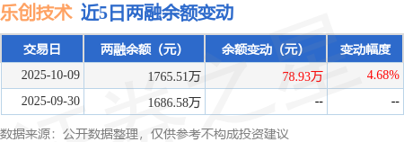 证券之星消息,10月9日,乐创技术(920425)融资买入192.41万元,融资偿还113.48万元,融资净买入78.93万元,融资余额1765.51万元。