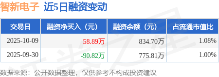 证券之星消息,10月9日,智新电子(920212)融资买入83.55万元,融资偿还24.66万元,融资净买入58.89万元,融资余额834.7万元。