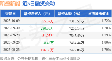 证券之星消息,10月9日,凯盛新能(600876)融资买入354.13万元,融资偿还298.76万元,融资净买入55.37万元,融资余额7310.51万元。