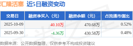 证券之星消息,10月9日,汇隆活塞(920455)融资买入48.51万元,融资偿还8.41万元,融资净买入40.1万元,融资余额470.68万元。