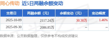 证券之星消息,10月9日,同心传动(920454)融资买入64.62万元,融资偿还34.23万元,融资净买入30.38万元,融资余额2117.24万元。