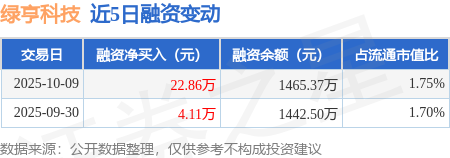 证券之星消息,10月9日,绿亨科技(920866)融资买入47.04万元,融资偿还24.18万元,融资净买入22.86万元,融资余额1465.37万元。