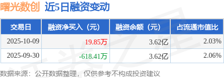证券之星消息,10月9日,曙光数创(920808)融资买入929.66万元,融资偿还909.81万元,融资净买入19.85万元,融资余额3.62亿元。