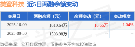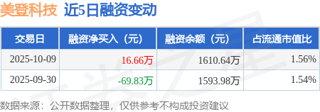 证券之星消息,10月9日,美登科技(920227)融资买入70.15万元,融资偿还53.5万元,融资净买入16.66万元,融资余额1610.64万元。
