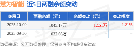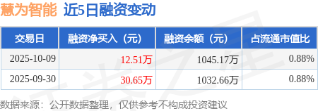 证券之星消息,10月9日,慧为智能(920876)融资买入114.45万元,融资偿还101.94万元,融资净买入12.51万元,融资余额1045.17万元。
