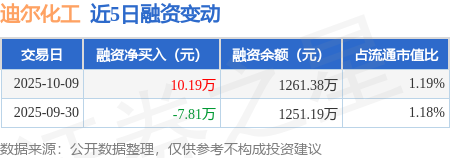 证券之星消息,10月9日,迪尔化工(920304)融资买入37.53万元,融资偿还27.34万元,融资净买入10.19万元,融资余额1261.38万元。