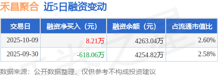 证券之星消息,10月9日,禾昌聚合(920089)融资买入412.93万元,融资偿还404.72万元,融资净买入8.21万元,融资余额4263.04万元。