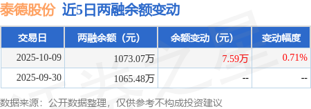 证券之星消息,10月9日,泰德股份(920378)融资买入51.56万元,融资偿还43.97万元,融资净买入7.59万元,融资余额1073.07万元。