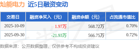证券之星消息,10月9日,灿能电力(920299)融资买入49.61万元,融资偿还47.64万元,融资净买入1.97万元,融资余额568.72万元。