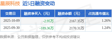 证券之星消息,10月9日,星辰科技(920885)融资买入110.57万元,融资偿还113.52万元,融资净卖出2.95万元,融资余额2167.35万元。
