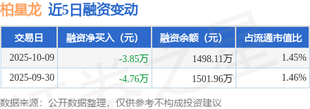 证券之星消息,10月9日,柏星龙(920075)融资买入8.26万元,融资偿还12.11万元,融资净卖出3.85万元,融资余额1498.11万元。