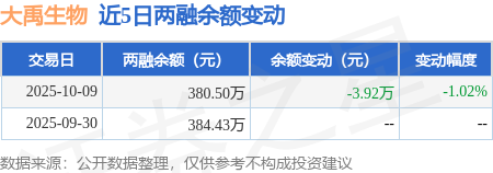 证券之星消息,10月9日,大禹生物(920970)融资买入26.9万元,融资偿还30.82万元,融资净卖出3.92万元,融资余额380.5万元。