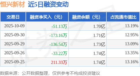 证券之星消息,10月9日,恒兴新材(603276)融资买入453.34万元,融资偿还504.47万元,融资净卖出51.13万元,融资余额1.7亿元。