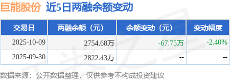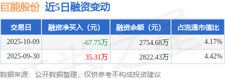 证券之星消息,10月9日,巨能股份(920578)融资买入41.56万元,融资偿还109.31万元,融资净卖出67.75万元,融资余额2754.68万元。