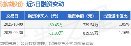 证券之星消息,10月9日,驰诚股份(920407)融资买入56.65万元,融资偿还137.1万元,融资净卖出80.45万元,融资余额739.54万元。