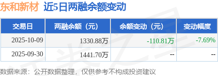证券之星消息,10月9日,东和新材(920792)融资买入52.99万元,融资偿还163.8万元,融资净卖出110.81万元,融资余额1330.88万元。
