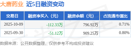 证券之星消息,10月9日,大唐药业(920433)融资买入44.86万元,融资偿还157.19万元,融资净卖出112.33万元,融资余额796.92万元。
