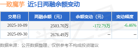 证券之星消息,10月9日,一致魔芋(920273)融资买入463.79万元,融资偿还636.58万元,融资净卖出172.79万元,融资余额2503.7万元。