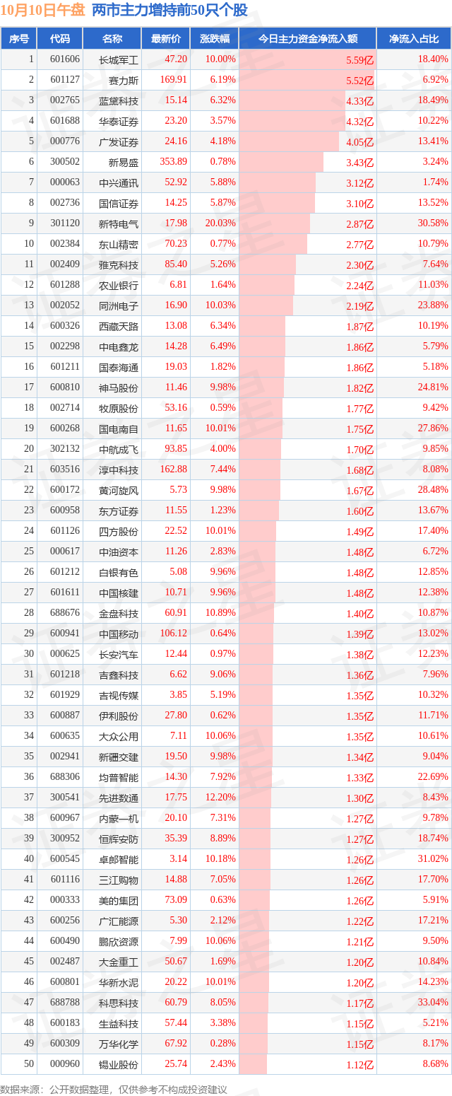 两市主力增持最多的前十只个股为: