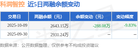 证券之星消息,10月9日,科润智控(920062)融资买入125.52万元,融资偿还413.6万元,融资净卖出288.08万元,融资余额2643.15万元。