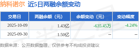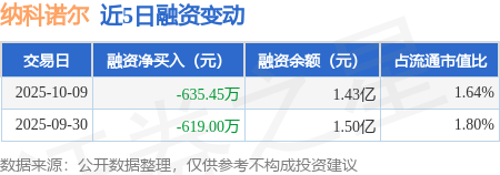 证券之星消息,10月9日,纳科诺尔(920522)融资买入1367.41万元,融资偿还2002.86万元,融资净卖出635.45万元,融资余额1.43亿元。