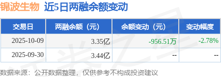 证券之星消息,10月9日,锦波生物(920982)融资买入1652.92万元,融资偿还2609.42万元,融资净卖出956.51万元,融资余额3.35亿元。