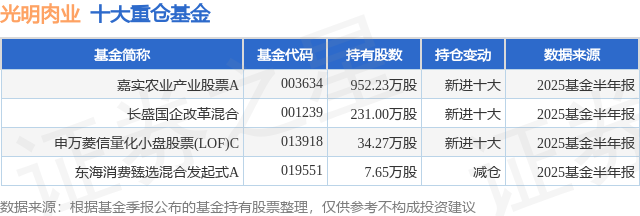 重仓光明肉业的公募基金请见下表: