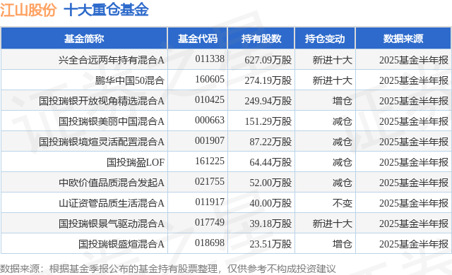 根据2025基金半年报公募基金重仓股数据,重仓该股的公募基金共16家,其中持有数量最多的公募基金为兴证全球基金的兴全合远两年持有混合A。兴全合远两年持有混合A目前规模为17.74亿元,最新净值1.0178(10月9日),较上一交易日下跌0.98%,近一年上涨19.0%。该公募基金现任基金经理为吴钊华。