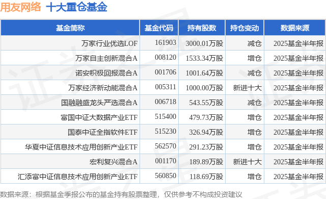根据2025基金半年报公募基金重仓股数据,重仓该股的公募基金共29家,其中持有数量最多的公募基金为万家基金的万家行业优选LOF。万家行业优选LOF目前规模为78.3亿元,最新净值1.5149(10月9日),较上一交易日上涨0.42%,近一年上涨55.82%。该公募基金现任基金经理为黄兴亮。黄兴亮在任的基金产品包括:万家经济新动能混合A,管理时间为2019年10月30日至今,期间收益率为103.25%;万家自主创新混合A,管理时间为2020年2月10日至今,期间收益率为32.37%;万家创业板2年定期开放混合C,管理时间为2020年8月14日至今,期间收益率为-19.78%。
