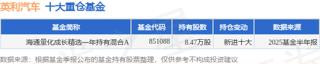 根据2025基金半年报公募基金重仓股数据,重仓该股的公募基金共1家,其中持有数量最多的公募基金为上海海通证券资产管理的海通量化成长精选一年持有混合A。海通量化成长精选一年持有混合A目前规模为0.17亿元,最新净值1.2857(10月9日),较上一交易日上涨1.88%,近一年上涨19.25%。该公募基金现任基金经理为胡倩 张强。胡倩在任的基金产品包括:海通量化价值精选一年持有混合A,管理时间为2021年2月24日至今,期间收益率为7.04%;海通策略优选混合A,管理时间为2022年10月31日至今,期间收益率为31.08%。张强在任的基金产品包括:海通量化价值精选一年持有混合A,管理时间为2025年2月7日至今,期间收益率为23.17%;海通策略优选混合A,管理时间为2025年2月7日至今,期间收益率为23.81%。