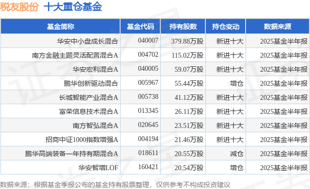 根据2025基金半年报公募基金重仓股数据,重仓该股的公募基金共19家,其中持有数量最多的公募基金为华安基金的华安中小盘成长混合。华安中小盘成长混合目前规模为18.5亿元,最新净值3.279(10月9日),较上一交易日上涨3.79%,近一年上涨14.77%。该公募基金现任基金经理为金拓。金拓在任的基金产品包括:华安智增精选混合,管理时间为2023年10月23日至今,期间收益率为20.89%;华安景气回报混合发起式A,管理时间为2024年9月19日至今,期间收益率为22.83%;