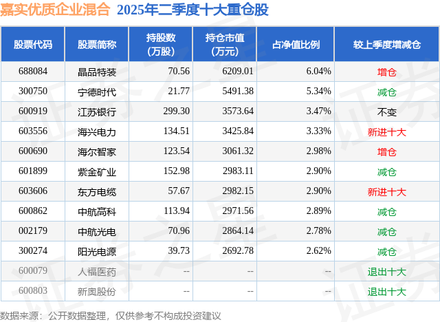 根据2025基金半年报公募基金重仓股数据,重仓该股的公募基金共9家,其中持有数量最多的公募基金为嘉实基金的嘉实优质企业混合。嘉实优质企业混合目前规模为10.29亿元,最新净值1.488(10月9日),较上一交易日上涨1.99%,近一年上涨24.94%。该公募基金现任基金经理为刘晗竹。刘晗竹在任的基金产品包括:嘉实均衡配置混合,管理时间为2023年9月19日至今,期间收益率为18.77%;