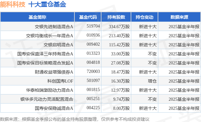根据2025基金半年报公募基金重仓股数据,重仓该股的公募基金共18家,其中持有数量最多的公募基金为交银施罗德基金的交银先进制造混合A。交银先进制造混合A目前规模为43.68亿元,最新净值5.3634(10月9日),较上一交易日上涨1.0%,近一年上涨46.52%。该公募基金现任基金经理为郭若。郭若在任的基金产品包括:交银启信混合发起A,管理时间为2023年3月1日至今,期间收益率为44.0%;交银精选混合,管理时间为2025年7月19日至今,期间收益率为34.28%;